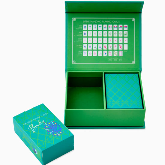Ditch the bulky tiles and travel light with Mahjong Playing Cards! Featuring beautiful Birdie Tile designs on these green and blue cards, this deck offers the classic Mahjong experience in a convenient, portable format. Perfect for on-the-go enthusiasts, these cards let you enjoy strategic gameplay anywhere, anytime, all while keeping your luggage light thanks to the space-saving design.