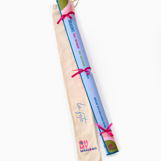 Behold the chic and feminine La Fete Mahjong Mat, a springtime-inspired mat crafted to infuse your gameplay with romance and sophistication. The allure of the La Fete Mahjong Mat goes beyond its captivating pink, blue, and olive aesthetics. With a non-slip surface that ensures your gameplay remains steady, you can indulge in your passion for the game with the confidence of a seasoned pro. And as if that weren't enough, this effortlessly fabulous mat also comes adorned with essential rules for American Mahjong along the sides, guiding you through the game with clarity.
