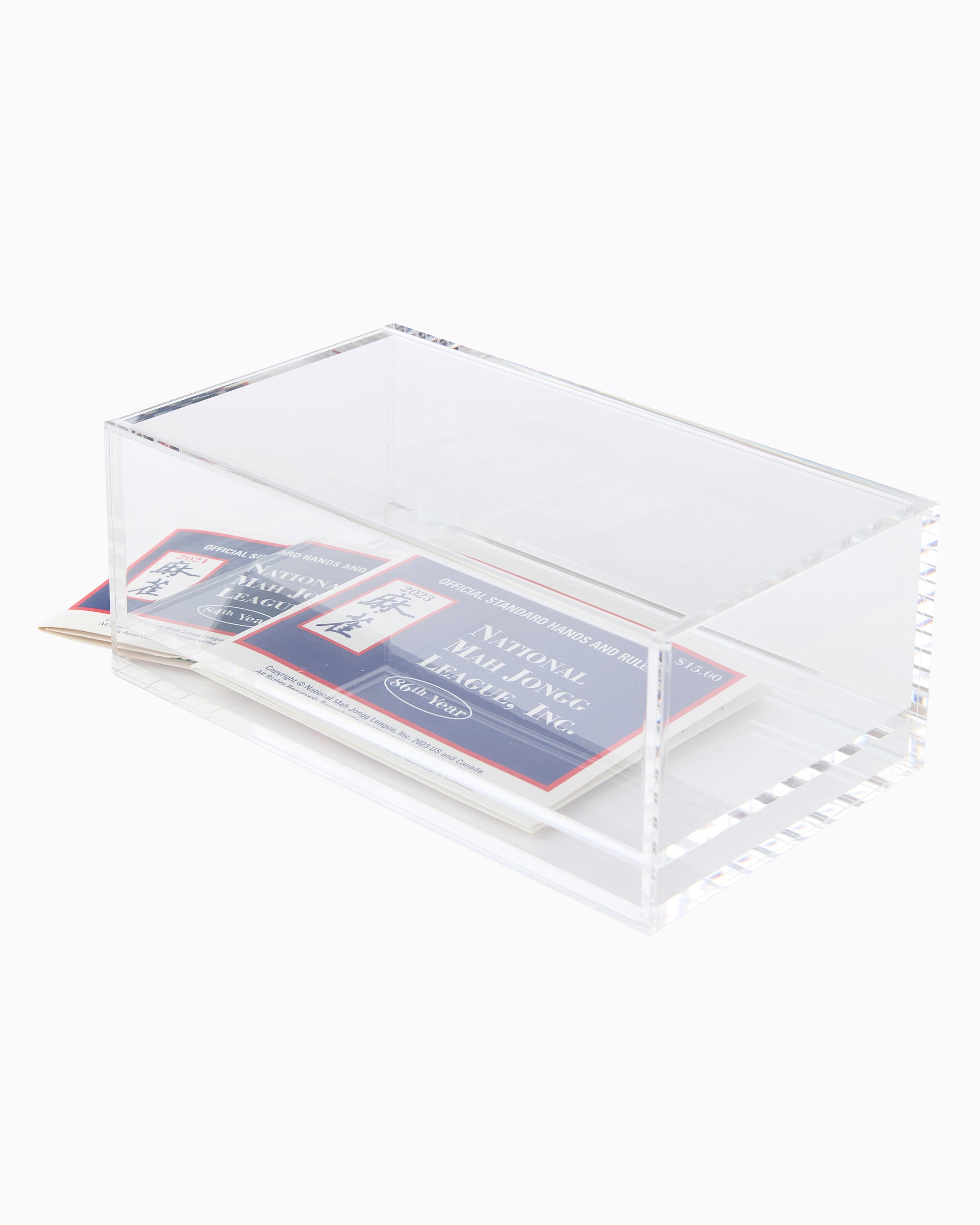 This box can hold Oh My Mahjong standard size Mahjong tiles, all displayed for your viewing pleasure. Plus, there's a slot to store your National Mah Jongg League playing cards - because let's be real, you're a serious player.