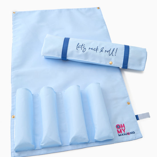 Light Blue Let's Rack & Roll Bag: Stay organized with this light blue storage solution for your racks and pushers. The roll-up design, with a secure Velcro closure, ensures your accessories stay pristine.
