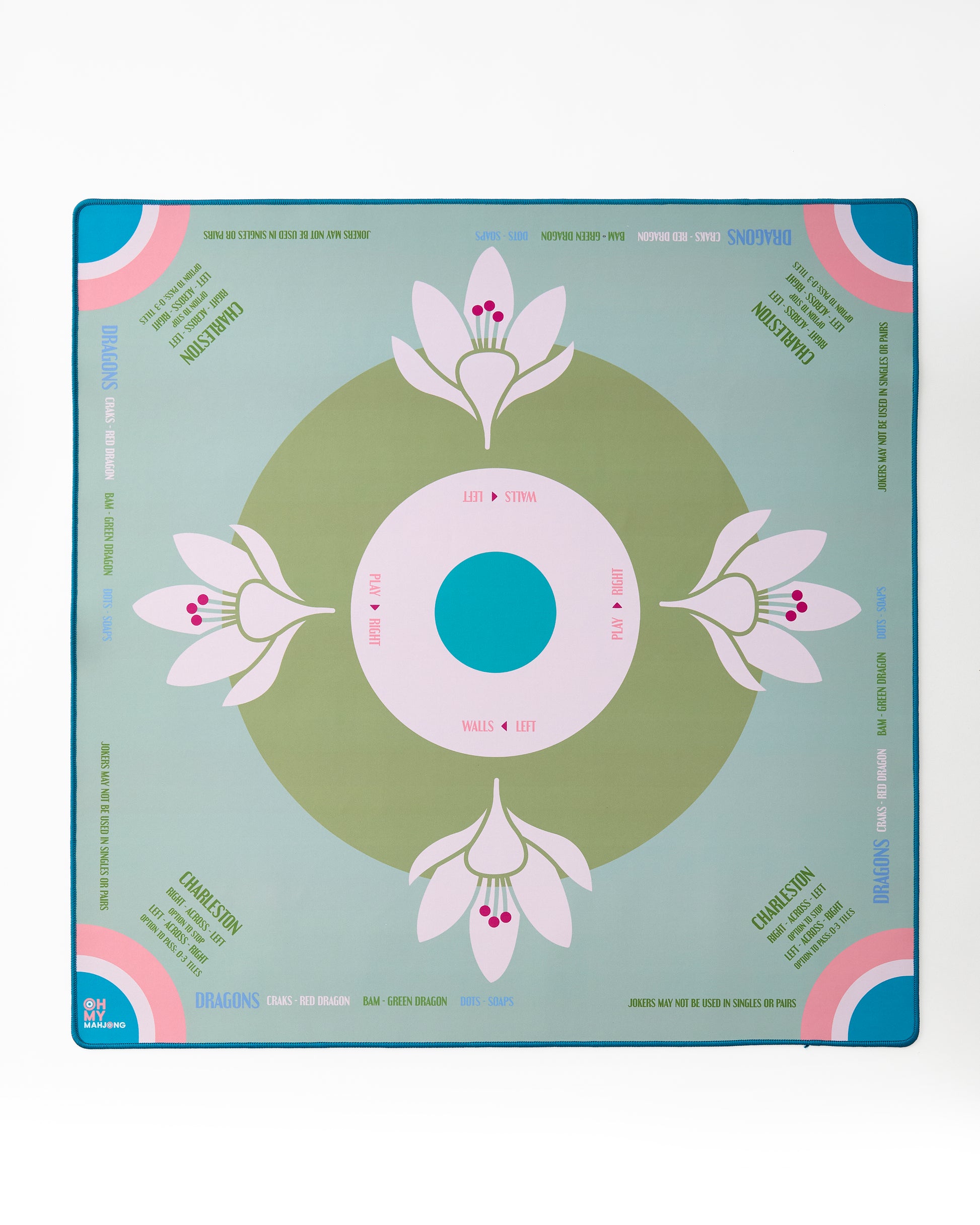 Feast your eyes on the Sage Lotus Mahjong Mat –– a mesmerizing collection of sage greens, delicate pinks, and serene blues that guide you into tranquility and elegance. This mat is more than just a beautiful backdrop for your games –– it's a mix of style and practicality. With its soothing colors and intricate design, prepare to be transported to a tranquil garden oasis that sets the stage for hours of immersive gameplay. The helpful addition of essential rules for American Mahjong are placed along the sides. Let's not forget its practical side –– with a non-slip surface that ensures stability and precision.